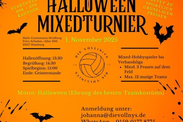 Wenn sich Volleyballer in Geister, Vampire und Hexen verwandeln, dann ist Halloween nicht mehr weit – und dieses Jahr wird es sportlich! Die Voll(n)ys (SCALA) laden am 1.November 2025, Anpfiff 12:00 Uhr zum ersten Halloween-Mixedturnier Hamburgs ein. Austragungsort ist die Sporthalle des Gymnasiums Heidberg in Langenhorn. „Wir wollten ein Turnier schaffen, das Spaß, Teamgeist und ein bisschen Grusel verbindet.“ Ein…